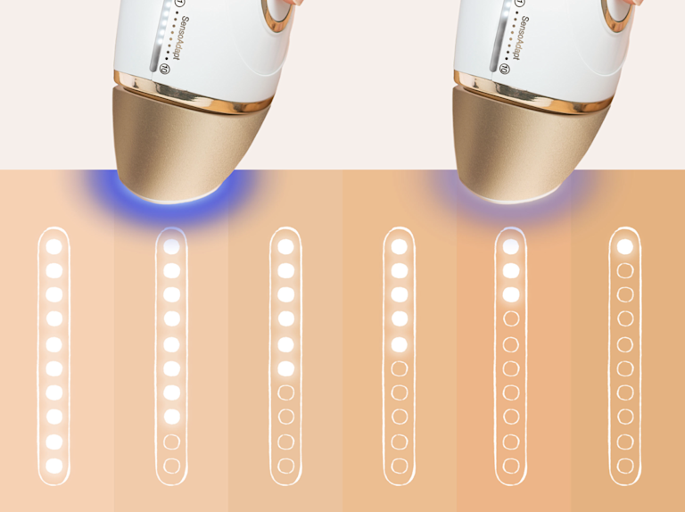 Vergewissern Sie sich anhand unserer Haut- und Körperhaarfarben-Tabelle, dass Ihr Hautton und Ihre Körperhaarfarbe für IPL geeignet sind. Braun IPL-Geräte sind nur für Hauttypen I bis V geeignet, um optimale Sicherheit und Wirksamkeit zu gewährleisten. Unsere IPL-Geräte verwenden die SkinProtect-Technologie, die Ihren Hautton erkennt, automatisch die richtige Leistung für Sie einstellt und nur dann blitzt, wenn es für Ihre Haut sicher ist.