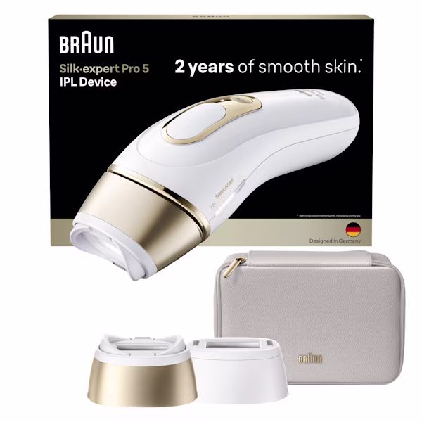Mit Braun Silk·expert Pro 5 genießt du 2 Jahre lang glatte Haut¹. Außerdem ist es einfach anzuwenden, ganz privat und bequem bei dir zu Hause. Darüber hinaus kannst du bei Braun IPL einen Sensitiv-Modus für Erstanwender oder für die Behandlung sensibler Bereiche wie dem Intimbereich wählen.