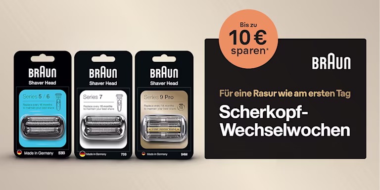 **Online Registrierung notwendig. Mobilfunkanschluss, IBAN und eMail benötigt. Ab 18 Jahren. Teilnahmezeitraum 01.10.2025 – 31.01.2026. Einlösezeitraum bis zum 02.03.2025. Mehr Informationen zu teilnehmenden Produkten und der Aktion unter http://braun.de/promotions